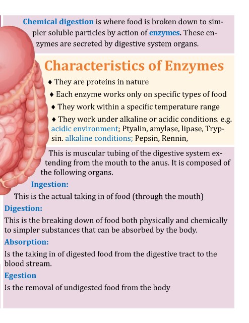 acidic environment; Ptyalin, amylase, lipase, Tryp-