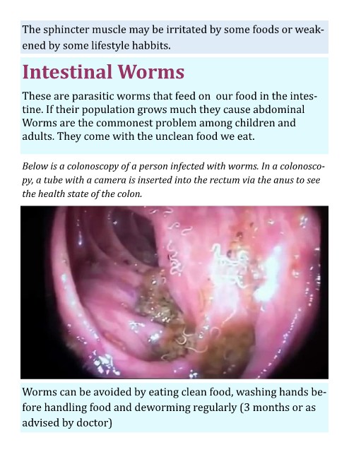 Worms can be avoided by eating clean food, washing hands be-