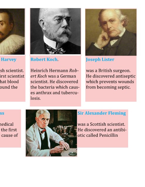 Sir. William Harvey Robert Koch. Joseph Lister