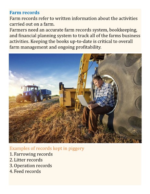 Examples of records kept in piggery