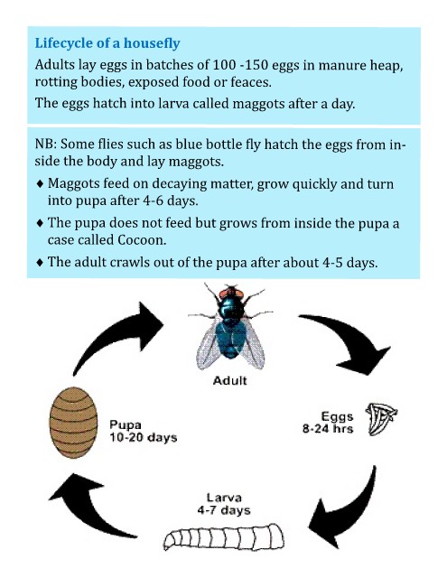 NB: Some flies such as blue bottle fly hatch the eggs from in-