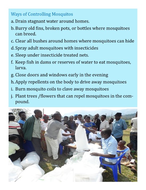 f. Keep fish in dams or reserves of water to eat mosquitoes,