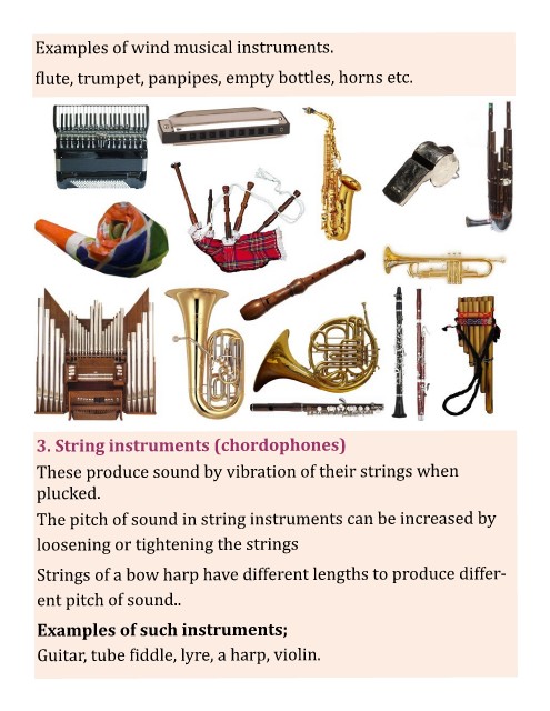 flute, trumpet, panpipes, empty bottles, horns etc.
