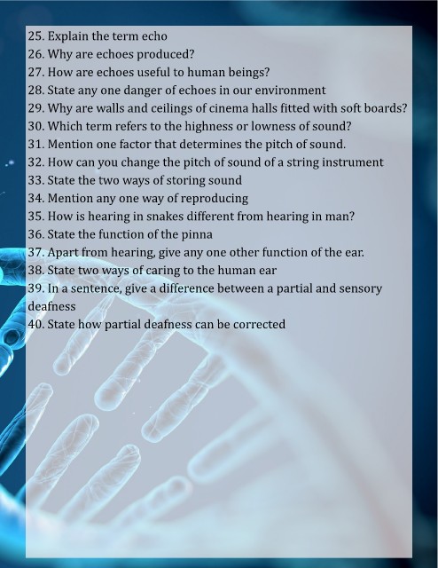 1       38. State two ways of caring to the human ear