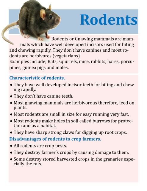 Examples include; Rats, squirrels, mice, rabbits, hares, porcu-