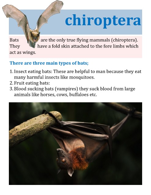 Bats V. < are the only true flying mammals (chiroptera).