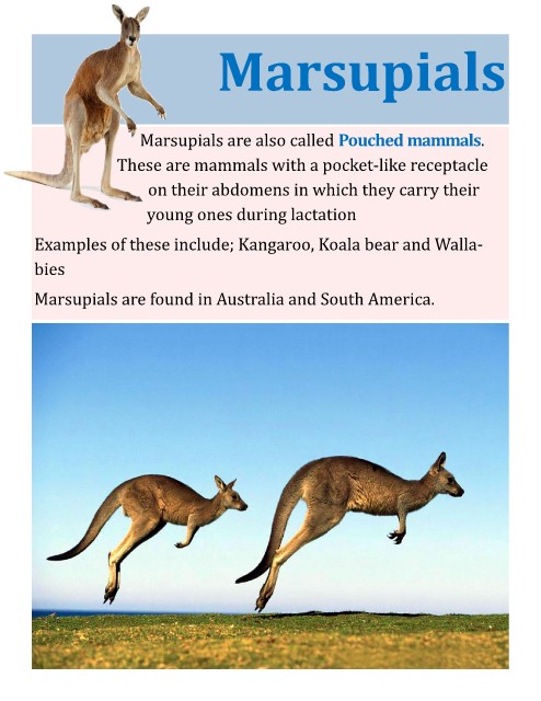Examples of these include; Kangaroo, Koala bear and Walla-