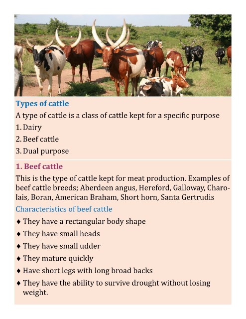 beef cattle breeds; Aberdeen angus, Hereford, Galloway, Charo-