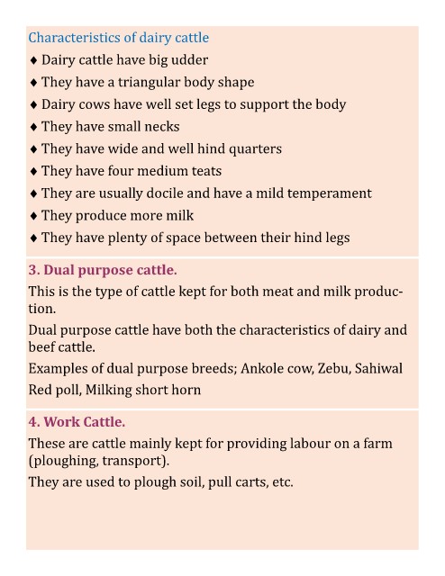 Examples of dual purpose breeds; Ankole cow, Zebu, Sahiwal