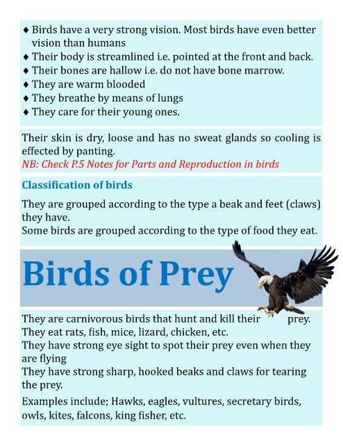 NB: Check P.5 Notes for Parts and Reproduction in birds