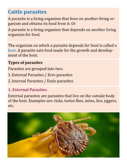 of the host. Examples are: ticks, tsetse flies, mites, lice, jiggers,