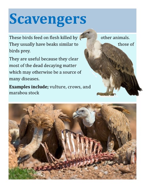 Examples include; vulture, crows, and