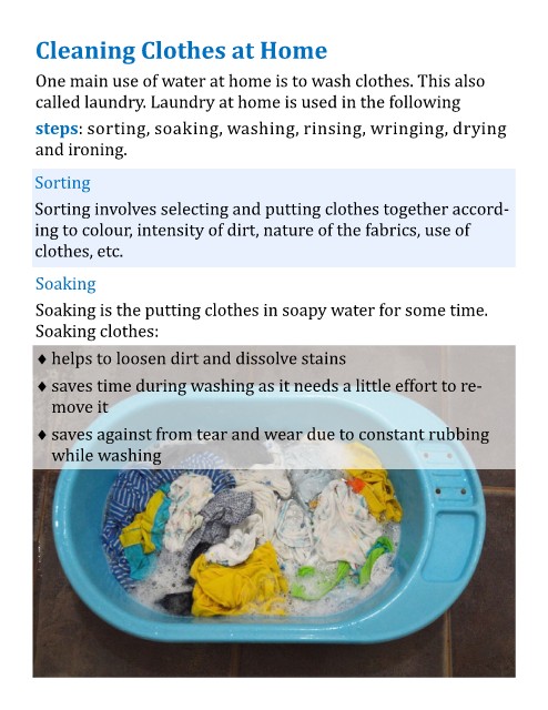 steps: sorting, soaking, washing, rinsing, wringing, drying