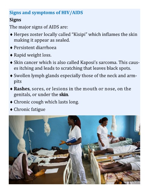 Skin cancer which is also called Kaposi’s sarcoma. This caus-