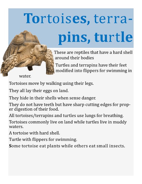 F . / Turtles and terrapins have their feet