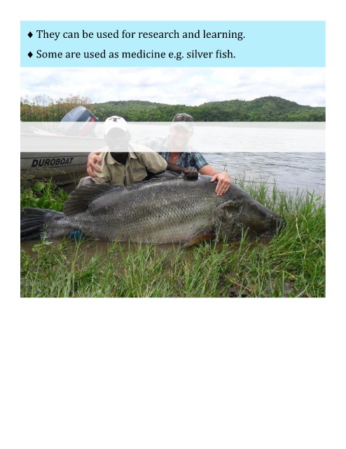 They can be used for research and learning. Some are used as medicine e.g. silver fish.