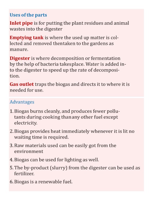 1. Biogas burns cleanly, and produces fewer pollu¬