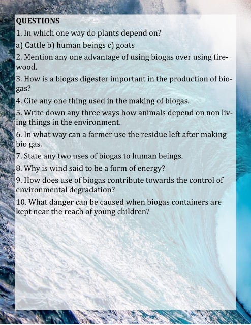 4. Cite any one thing used in the making of biogas.