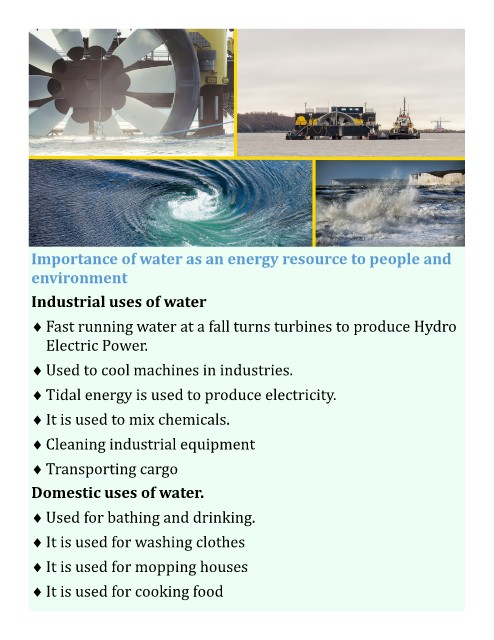Importance of water as an energy resource to people and